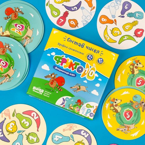 «Фрукто 10» – это не просто настольная игра, а настоящий помощник в обучении. Красочные карточки и азартный дух игры вовлекают ребенка в процесс и делают математику интересной.