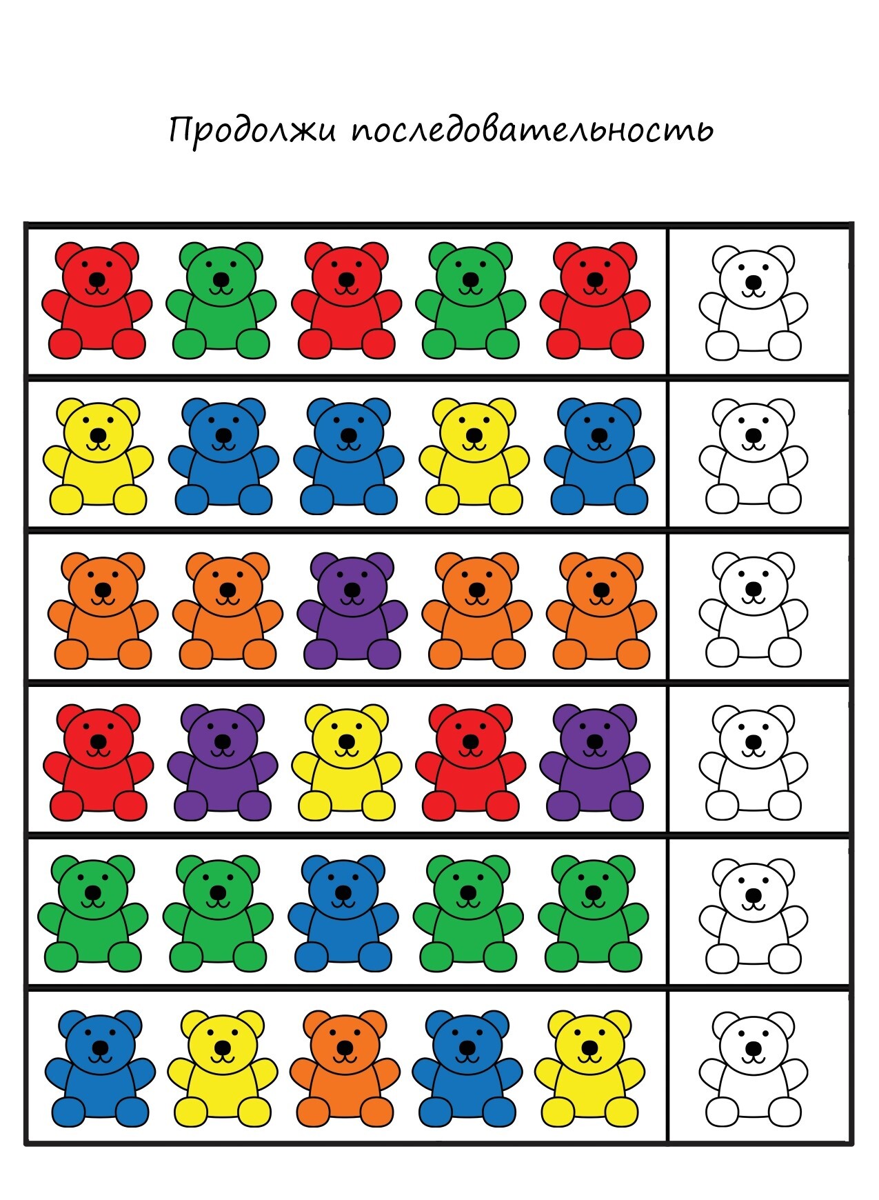 - Задания на продолжение логического ряда требуют от детей запоминания предыдущих элементов, что способствует развитию рабочей памяти. Это важно для выполнения более сложных задач в будущем.
