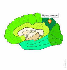 - Медиальная префронтальная кора (мПФК): участвует в обработке информации, связанной с самореферентностью, социальном познании и регуляции эмоций.