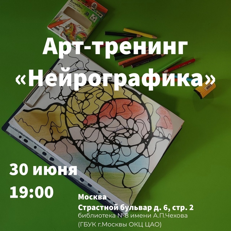 Психологи нейрошколы «Аксон» Мария Талалаева и Анна Лопухина предлагают вам провести вместе вечер нейрографики в библиотеке №8 им. А.П. Чехова.