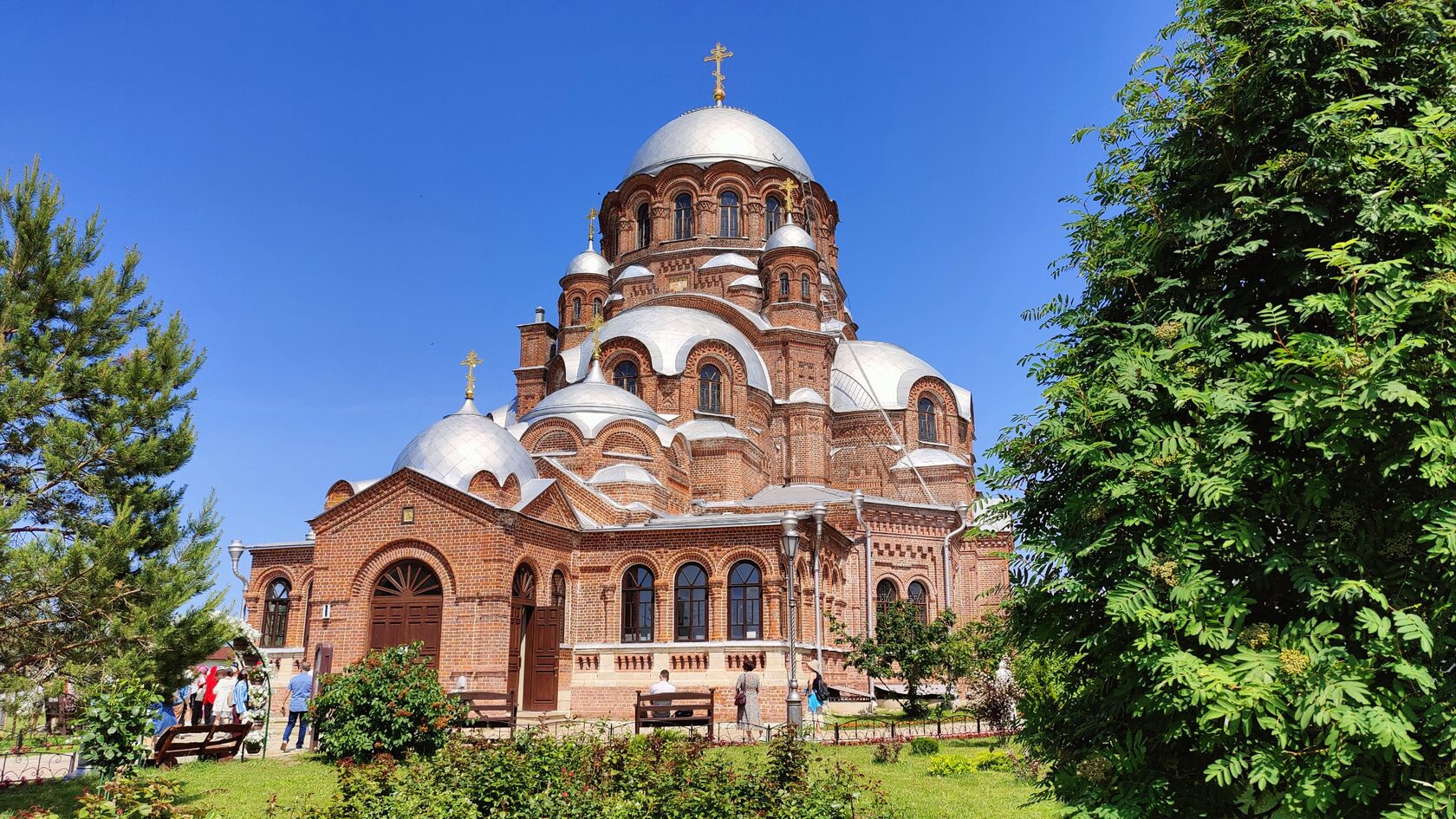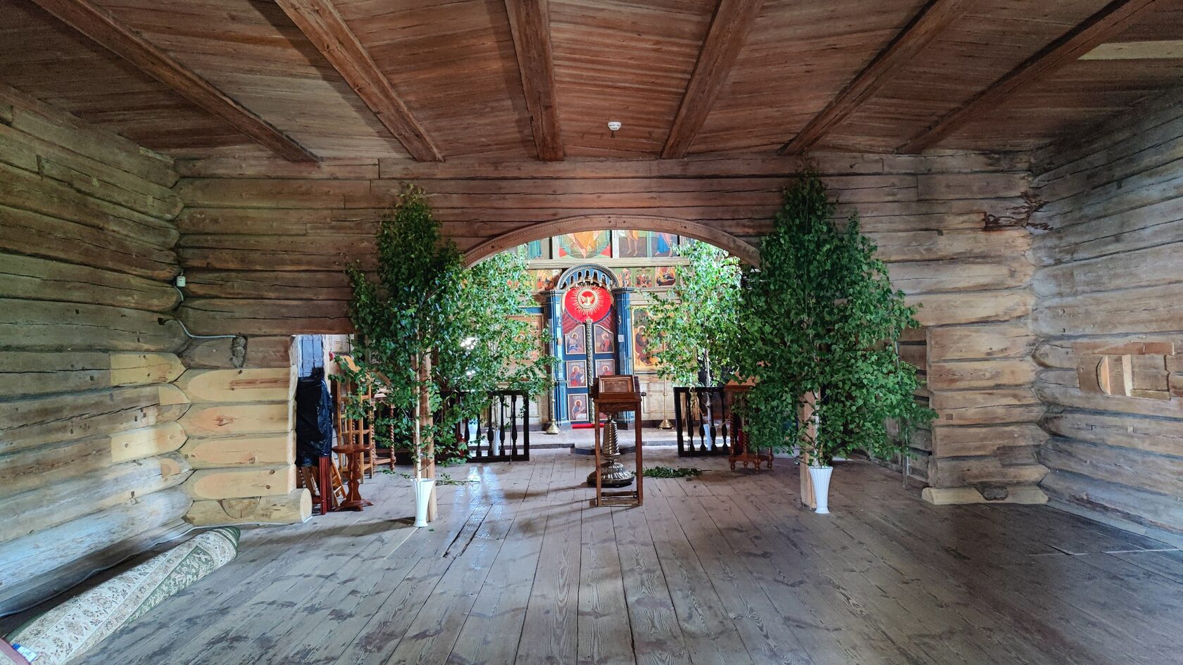 Обедали в монастырской столовой, где попробовали монастырские пирожки с картошкой и капустой — простые, но невероятно вкусные. Монастырский квас, холодный и с лёгкой кислинкой, стал настоящим открытием. Храмы были украшены берёзовыми ветвями к празднику Троицы, добавляя особого уюта.